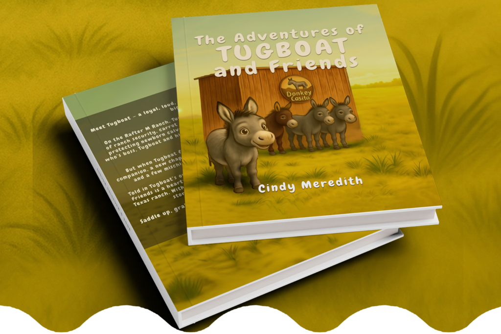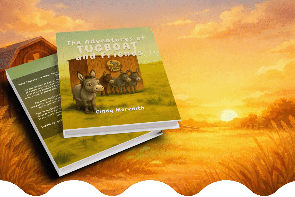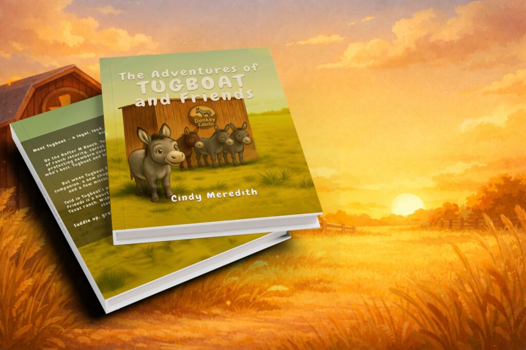 “Tugboat isn’t just a donkey. He’s a little teacher for kindness, courage, and friendship—straight from our ranch to your child’s imagination.” — Cindy Meredith